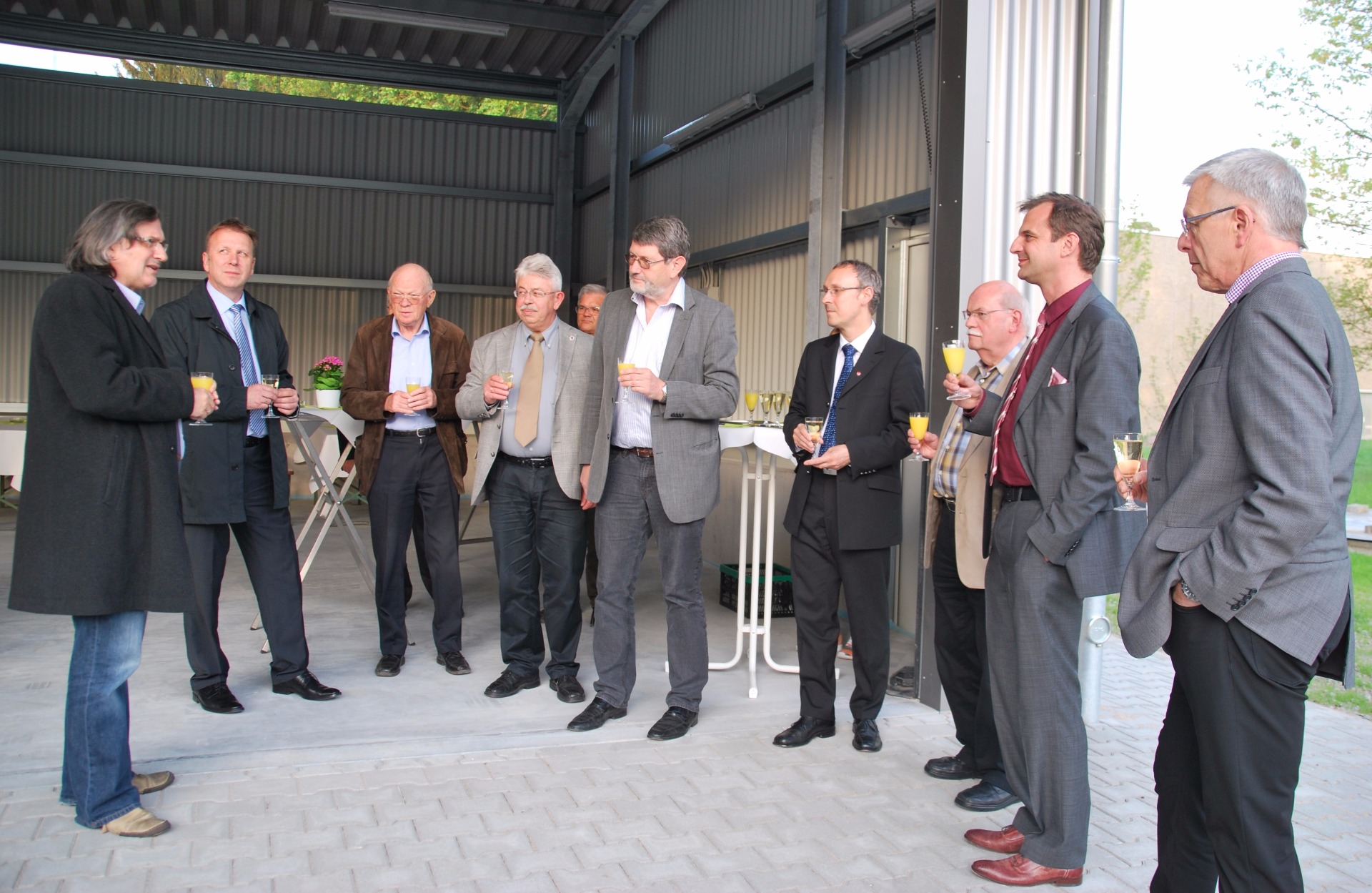 Die Mitglieder der Verbandsversammlung des Wasserbeschaffungsverbandes Riedgruppe Ost, weihen die neue Werkhalle ein.