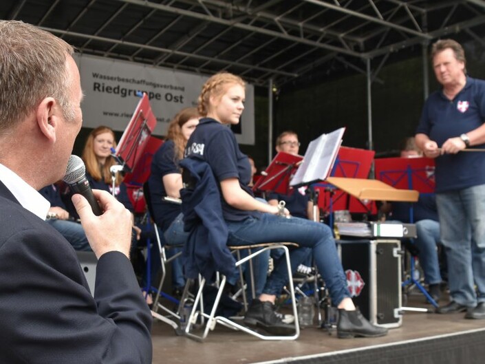 „Die nachhaltige Versorgung der Menschen mit qualitativ hochwertigem Trinkwasser und der respektvolle Umgang mit der Natur sind unsere Aufgaben“, sagte Ingo Bettels, Direktor des Wasserbeschaffungsverbandes Riedgruppe Ost zur Eröffnung des Tages der offenen Tür vor Vertretern der Landespolitik wie dem Landtagsabgeordneten Alexander Bauer, Landrat Christian Engelhardt sowie Vertretern der Verbandskommunen.