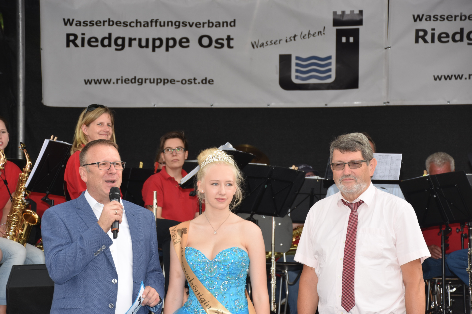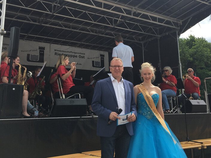 Eröffnung: Verbandsdirektor Ingo Bettels, Einhausens neue Kerwekönigin Chiara Rau und Verbandsvorsteher Klaus Schwab begrüßten die Gäste beim Tag der offenen Tür im Wasserwerk Jägersburg.