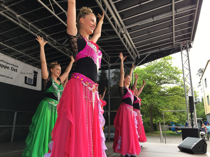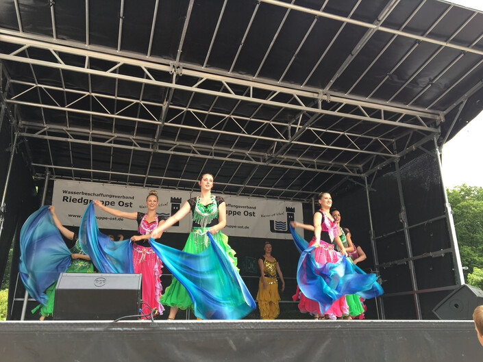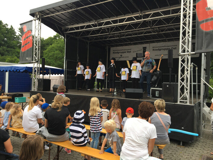 Auf einer Aktionsbühne spielte das Musikcorps der Freiwilligen Feuerwehr Einhausen. Kinderliedermacher Michel Suljic gab unter dem Motto „Räubertänze sind geheim“ ein Konzert nicht nur zur Freude der kleinen Gäste. Die „Dancing Chicks“ des Vereins zur Erhaltung der Tradition aus Einhausen erfreuten die Besucher ebenso mit einer Tanzeinlage wie das Feuerwehrballett „Feetback“ aus Lorsch. Die Freiwillige Feuerwehr Einhausen sorgte für das leibliche Wohl der Gäste. Auch für Kinder wurden ein Unterhaltungsprogramm mit Hüpfburg, Wasserspielen und eine Wasserwerk-Rallye geboten.