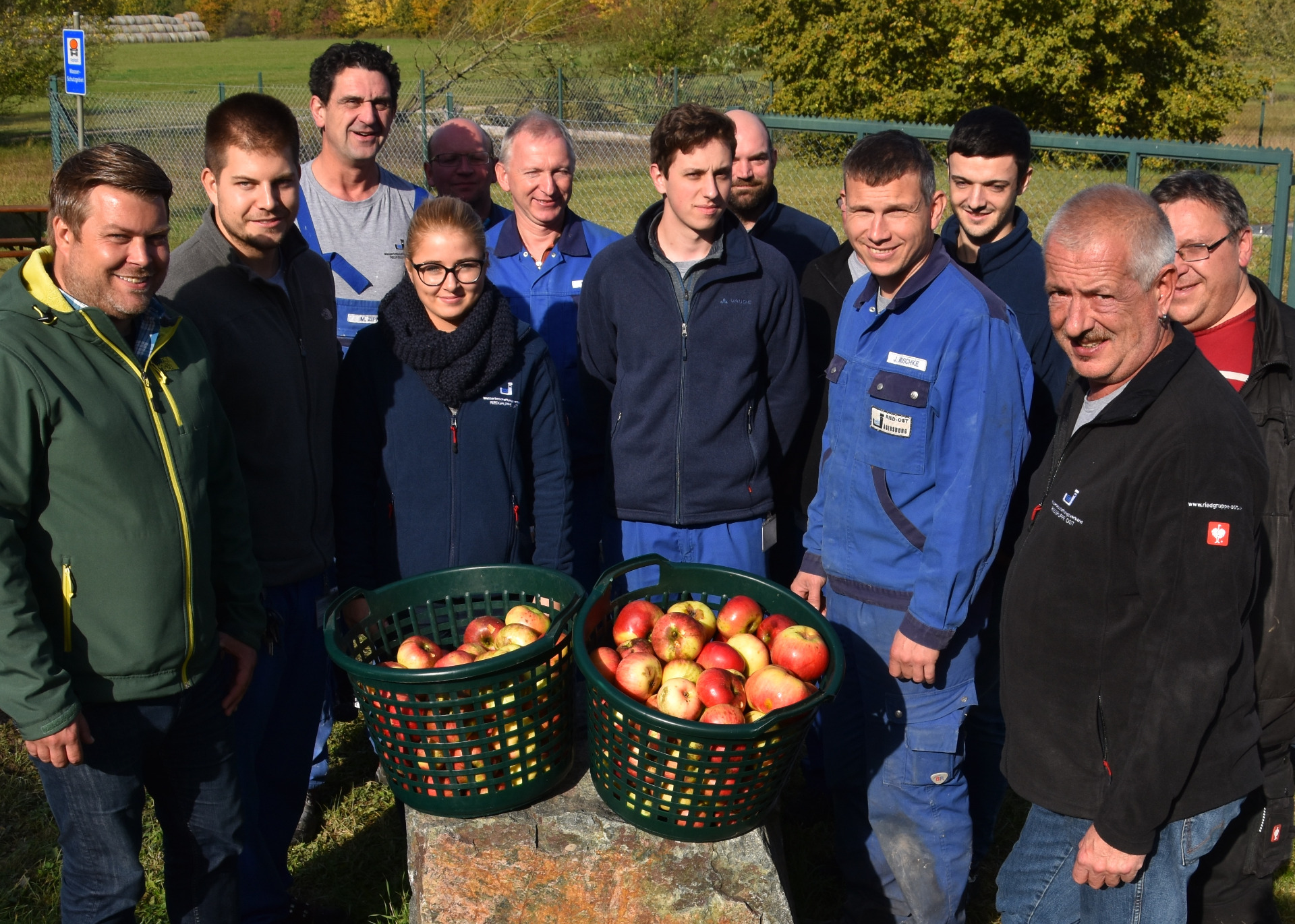 Einhausen/Jägersburg (WBVRO). Auch in diesem Herbst sind Mitarbeiter des Wasserbeschaffungsverbandes Riedgruppe Ost wieder freiwillig unter die Erntehelfer gegangen. „Die Apfelernte am Wasserwerk Feuersteinberg ist für uns ein Fixtermin“, sagt Personalratsvorsitzender Peter Mehl (r.). Der Ernteeinsatz ist eine Koproduktion mit der Initiative „Streuobstwiesenretter“. Durch aktiven Naturschutz zur Rettung der Streuobstwiesen beitragen, lautet die Zielsetzung der Gruppe. „Als Streuobstwiesenretter informieren wir, bieten Baumpatenschaften an und wollen ein Netzwerk für ihr Anliegen knüpfen“, erläutert Florian Schumacher (l.)
