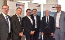 Beim Fünften Wasserinformationstag in Bensheim trafen sich 85 Vertreterinnen und Vertreter der Wasserwirtschaft aus Hessen und Rheinland-Pfalz zu einer Fachtagung. Bild (v.l: Ingo Bettels (Verbandsdirektor des WBVRO), Martin Weyand (BDEW), Heinz Flick (DVGW), Horst Meierhofer (LDEW), Dr. Friedhelm Fritsch (DLR Rheinhessen), Ronald Roepke (LDEW). Foto: WBVRO