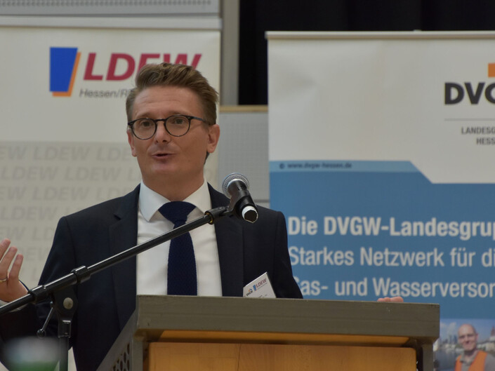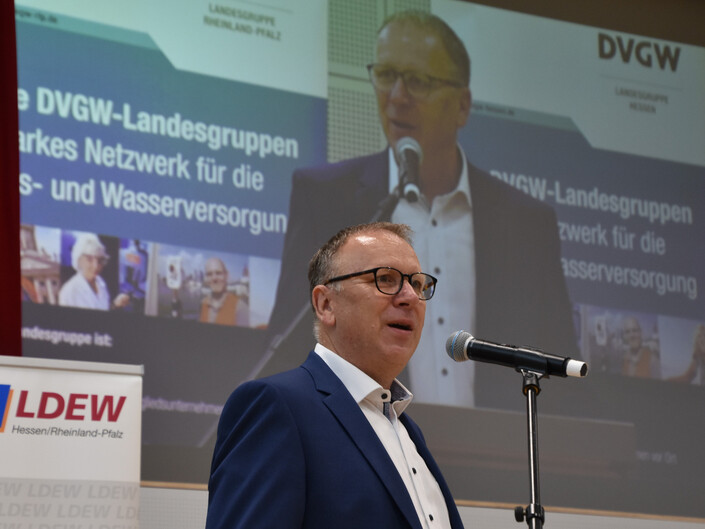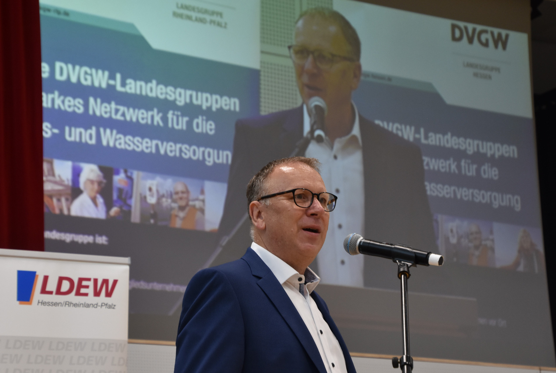 Der Vorsitzende der DVGW-Landesgruppe Hessen Jörg Höhler und Ronald Roepke, wasserpolitischer Sprecher des LDEW, erläuterten die stetig steigenden Anforderungen der Wasserversorger, das Lebensmittel Nummer 1 in gewohnt bester Qualität und jederzeit verfügbar zu den Kundinnen und Kunden zu bringen.