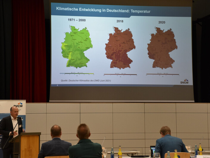 Petry verwies auf das breit angelegte „Zukunftsprogramm Wasser“ des DVGW hin, das unter anderem zum Ziel hat, Hotspots einer möglichen Wasserknappheit zu eruieren, um durch den frühzeitigen Ausbau von Verbundsystemen Versorgungsengpässe zu vermeiden.